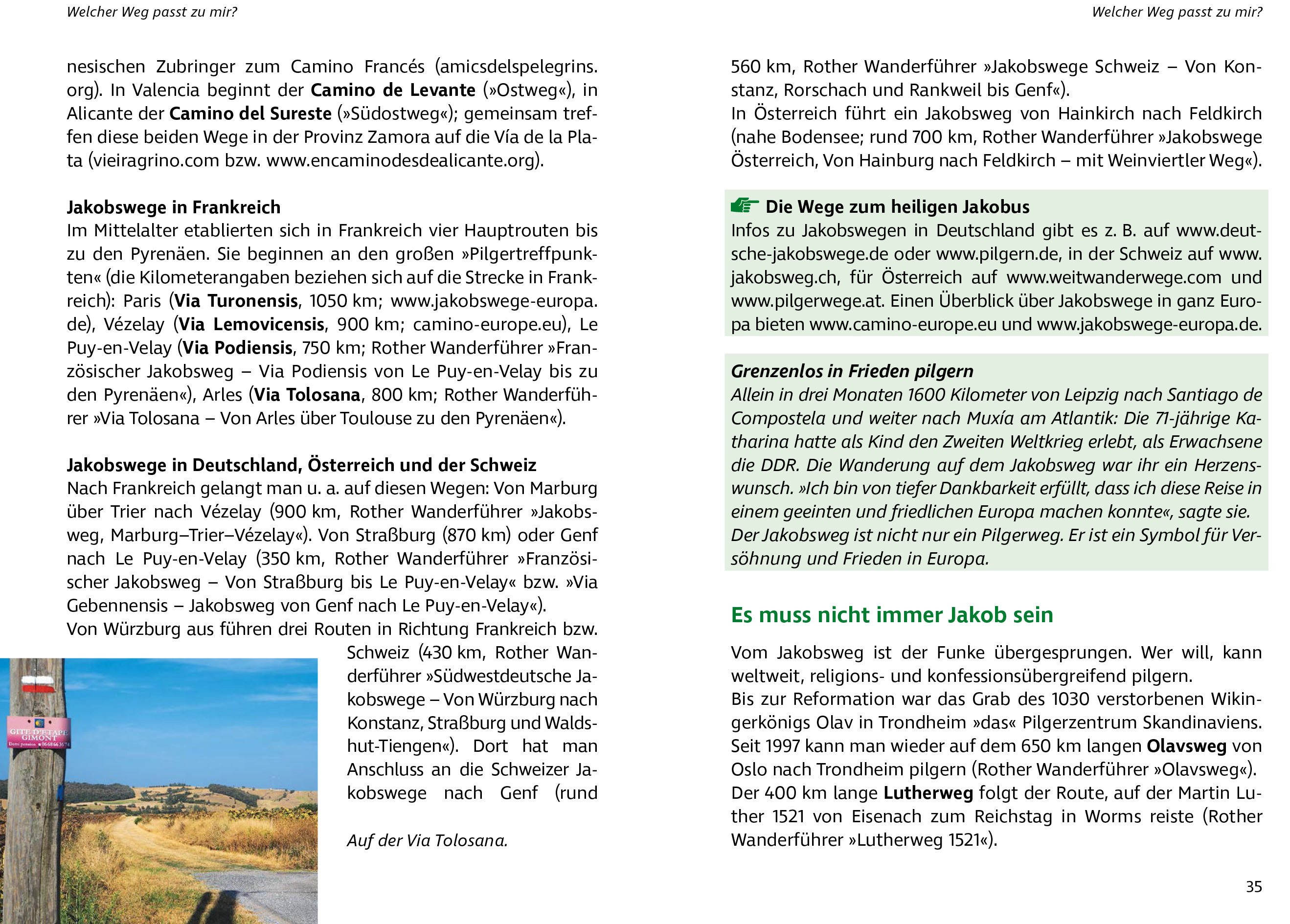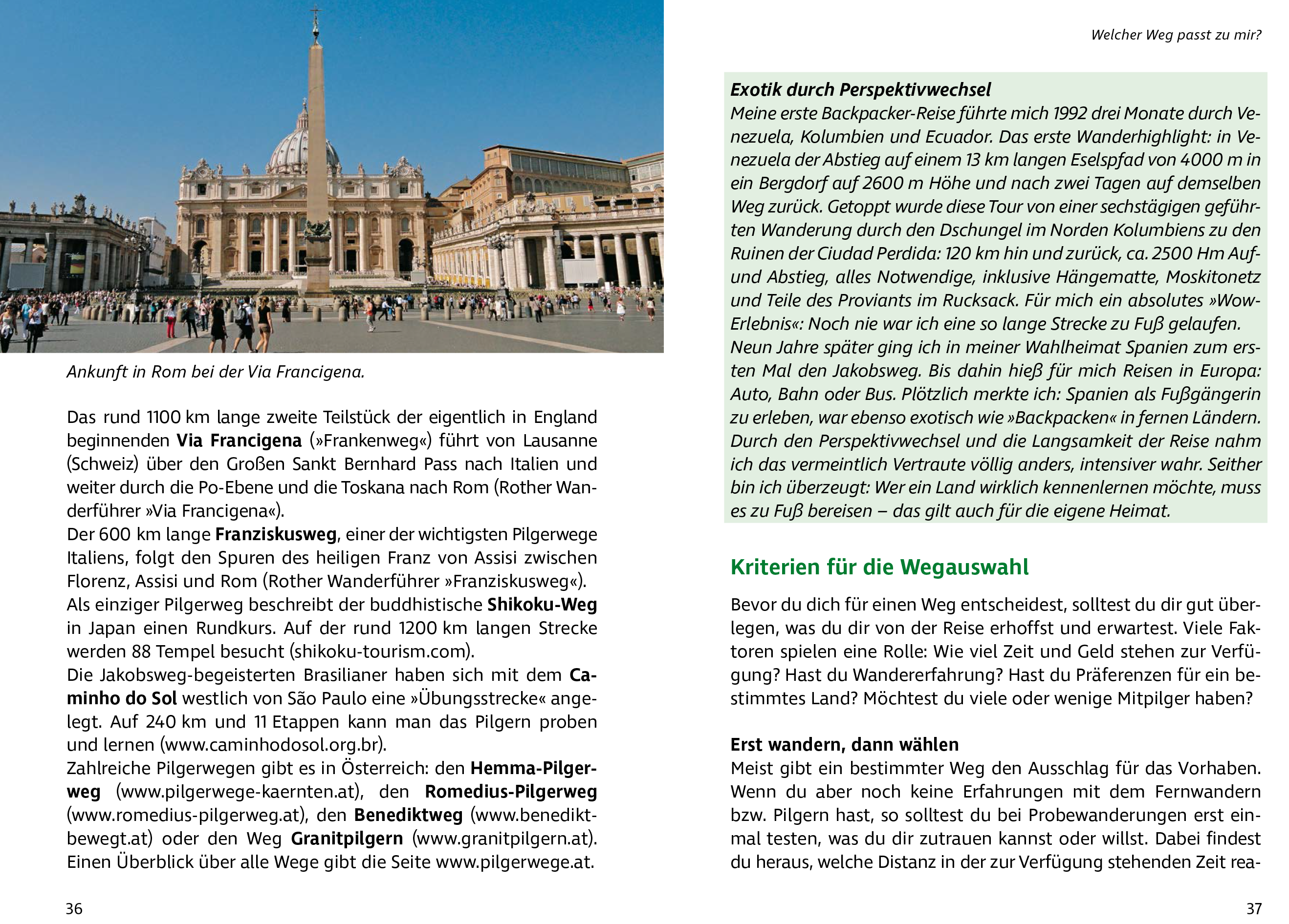 »Mit diesem Handbuch möchte ich vor allem all jene, die noch unschlüssig sind, ob sie eine Pilgerwanderung wirklich schaffen, ermuntern, dieses großartige Abenteuer zu wagen. Es müssen ja nicht gleich hunderte von Kilometern sein. Pilgern ist keine Frage der Quantität, sondern der Qualität. Durch den Jakobsweg sind zahlreiche Pilgerwege in vielen Ländern aus ihrem Dornröschenschlaf erwacht. Wer möchte, kann vielerorts direkt vor der eigenen Haustür starten. Es braucht nur den ersten Schritt dafür.«